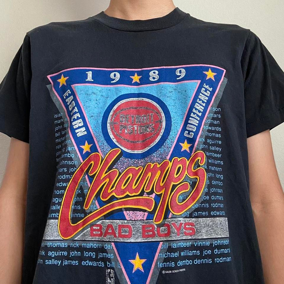 Vintage NBA Detroit Pistons 1989 Graphics Black Tee Shirt