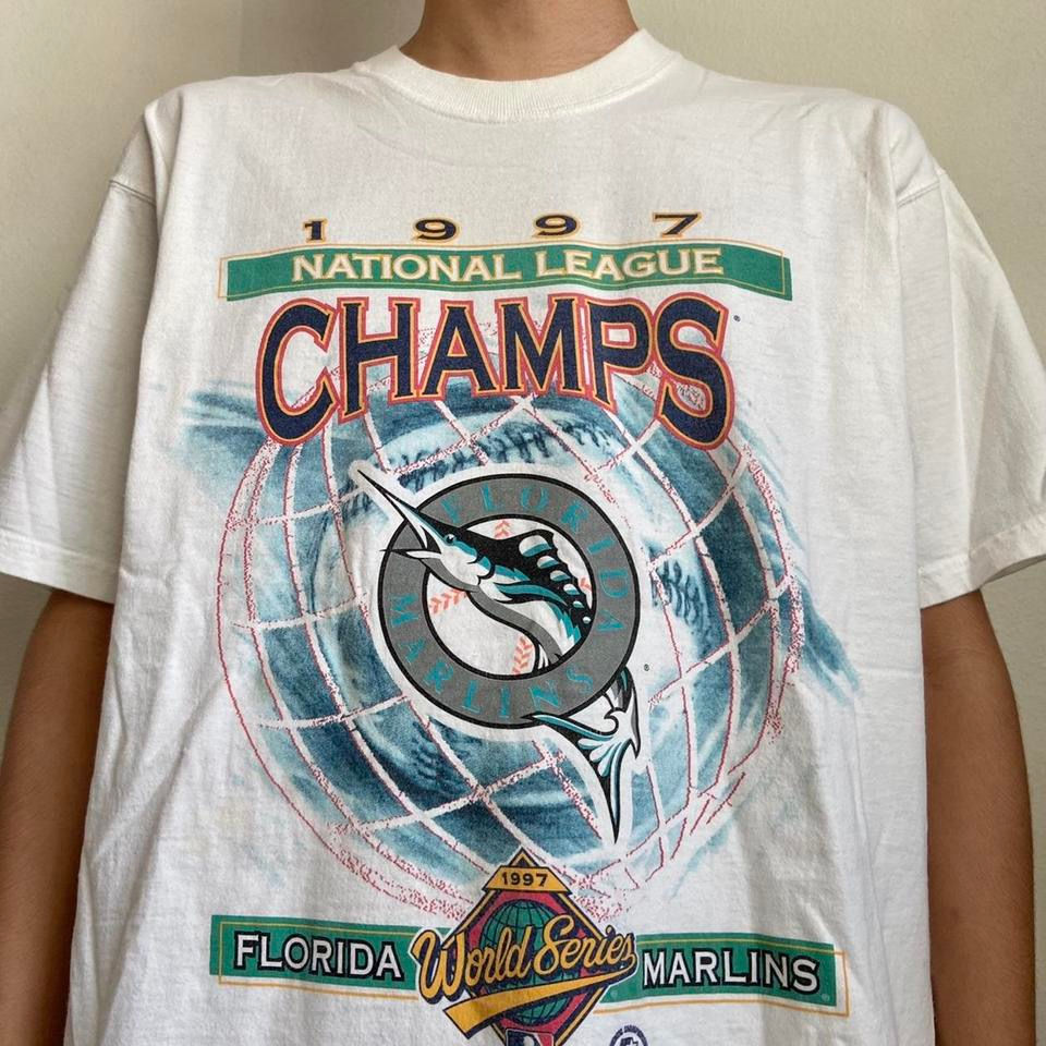 Vintage MLB Florida Marlins 1997 Graphics White Tee Shirt