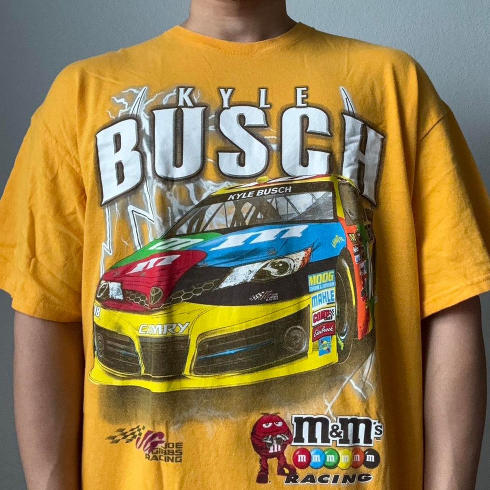 Vintage 2000s Kyle Busch M&Ms Nascar Graphics Yellow Tee Shirt